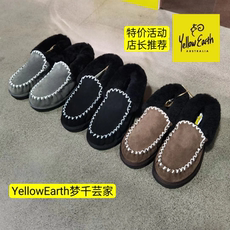 yellow earth新款包子懒人休闲鞋莫克森家居外穿羊皮毛一体雪地靴