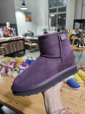 冬季新款雪地靴女羊皮毛一体短筒一脚蹬葡萄紫色保暖