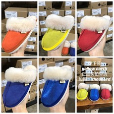 Yellow earth冬季新款羊毛一体保暖男女儿童家居平底拖鞋偏小一码